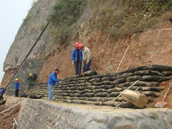 一般應(yīng)在施工現(xiàn)場(chǎng)去裝填生態(tài)袋,以節(jié)約運(yùn)輸費(fèi)。同時(shí)基礎(chǔ)和坡體處理產(chǎn)生的土體或碎石可用于填充生態(tài)袋。袋內(nèi)的填充物取決于實(shí)際需要,一般來(lái)說(shuō)適于裝袋的填充物包括:土壤、碎石、有利于植物生長(zhǎng)的肥料或上述材料的混合物。一般的封袋方法有:工業(yè)用手提縫紉機(jī)、塑料扎扣等(建議用戶自己選擇)。