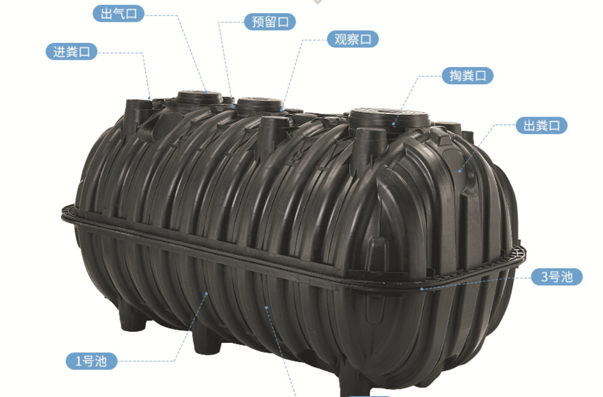 塑料及玻璃鋼化糞池密封性能好,能高效處理糞便,厭氧腐爛效果優(yōu)于傳統(tǒng)化糞池2倍以上。